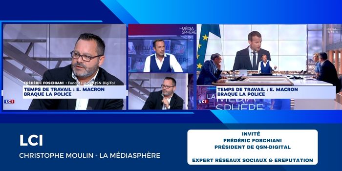 Frédéric Foschiani, CEO de QSN-DigiTal, intervenait aux côtés de Laurent Bazin (Journaliste, Fondateur de CauseToujoursConseil), Stéphane Rozès (Politologue, Président CAP) et Virginie Le Guay (Chef adjoint du Service Politique - Paris Match) pour réagir à l'actualité, toujours sous l'angle de la communication et des réseaux sociaux.