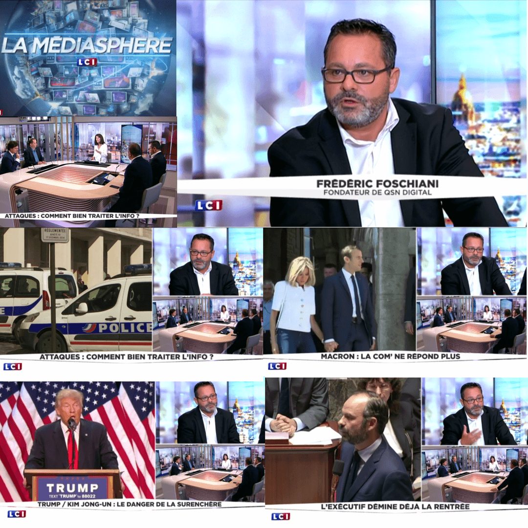 Frédéric Foschiani, CEO de QSN-DigiTal, intervenait aux côtés de Benjamin Morel (Docteur en Sciences Politiques), Mustapha Tossa (Journaliste et Politologue) et Michel Taube (Fondateur d'Opinion Internationale) sur plusieurs sujets d'actualités pour lesquels il abordait le rôle et l'impact des réseaux sociaux.