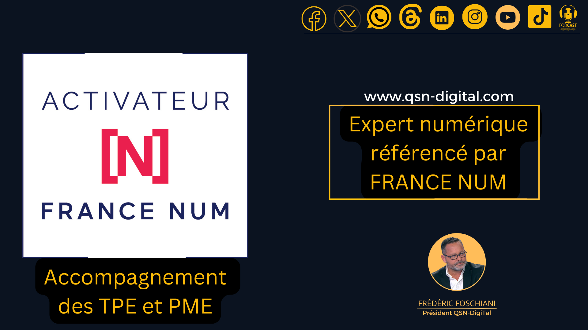 En tant qu'expert des réseaux sociaux et du digital, nous sommes fiers d'annoncer que QSN-DigiTal est maintenant officiellement un activateur France Num !